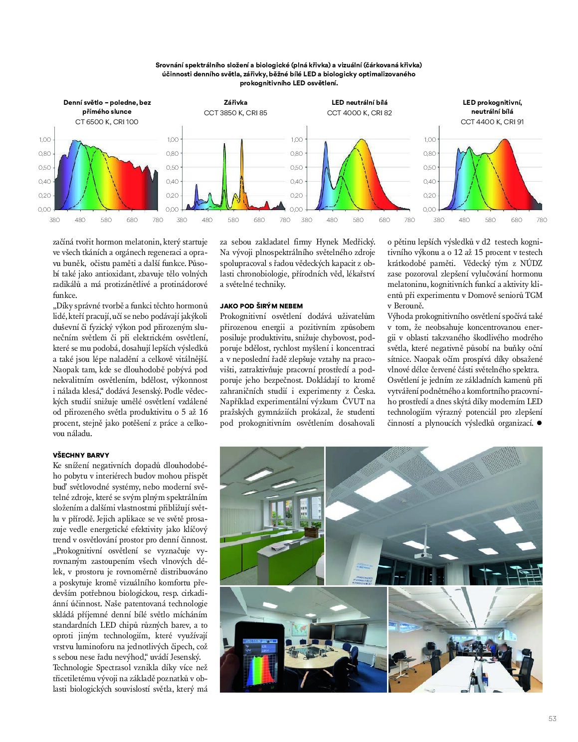 Artificial lighting with inappropriate spectral composition negatively affects human concentration, performance, and mood. People spend most of the day under artificial lighting, which can negatively impact their health and vitality. Proper spectral composition of light is important for the functioning of the circadian rhythm and hormonal processes in the body, which affect mood, performance, and regeneration. Artificial lighting can reduce productivity and overall mood by up to 16 percent.