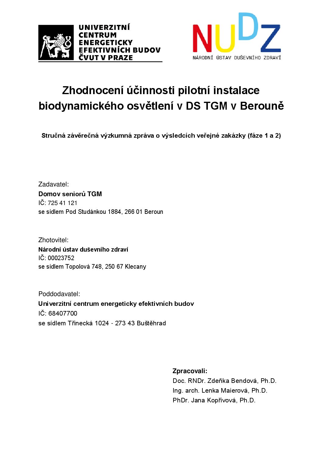 Brief final research report on the results of the impact of Spectrasol bio-dynamic circadian lighting on the clients and staff of the TGM senior home in Beroun