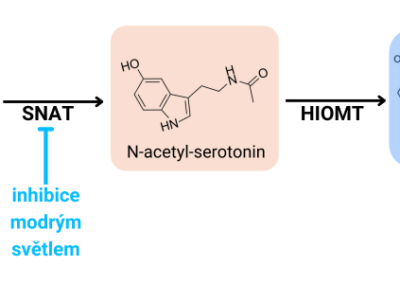 Without serotonin, there wouldnât be enough melatonin. Serotonin is a key precursor in melatonin synthesis. This process is a two-step procedure and requires two important enzymes that mediate these reactions: serotonin N-acetyltransferase (SNAT) and hydroxyindole-O-methyltransferase (HIOMT), see Fig. 2. The activity of the SNAT enzyme is very sensitive to light, especially blue and azure light, which has been shown to reduce its activity in various animal species. Studies also confirm sensitivity to green and UV-A light. This is why melatonin synthesis is light-dependent [4], [5], [6], [7].
