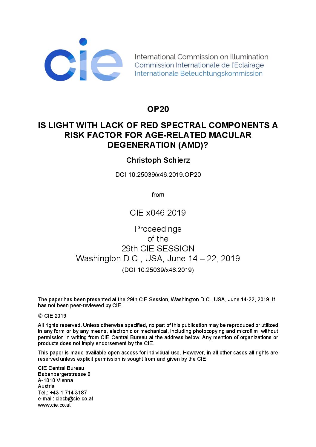 The renowned global authority in the field of lighting, CIE (International Commission of Illumination), has published a statement on the relationship between harmful blue light in short wavelengths and photobiomodulating red long wavelengths to age-related macular degeneration of the retina (AMD).