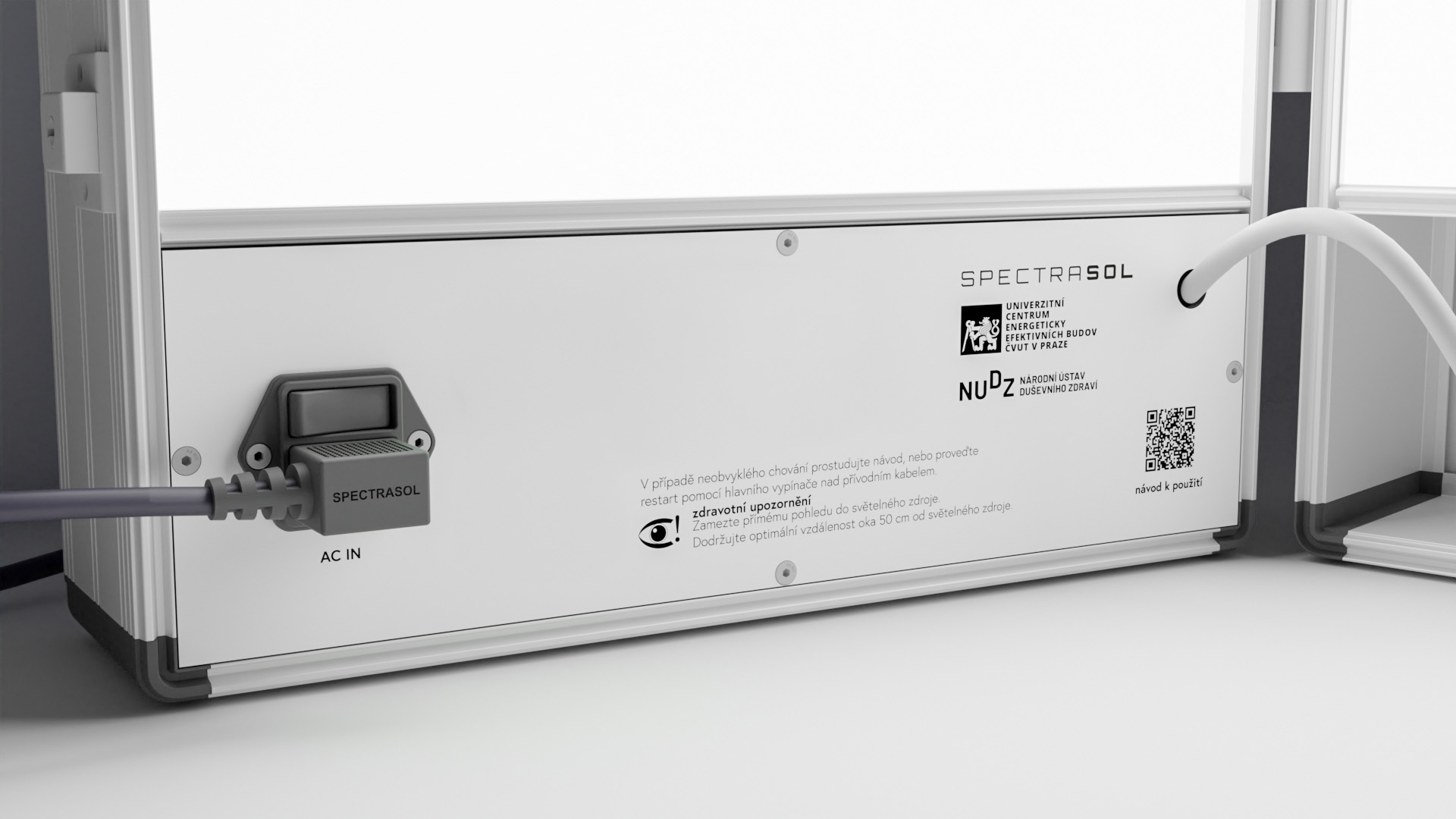 A portable device designed for phototherapy during hospitalisation, outpatient care and during the transition from clinical care to everyday life in the home environment. Thanks to the specific spectral composition of the integrated LEDs, it provides uniquely high therapeutic efficiency and visual comfort thanks to its large emitting area and optimised brightness component. Its effectiveness has been proven by the National Institute of Mental Health of the Czech Republic.