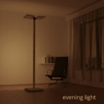 In the evening Sunflow emits a warm white light, bouncing it indirectly off the wall. It mimics the sun at sunset, which soothes the body and is suitable for evening relaxation.