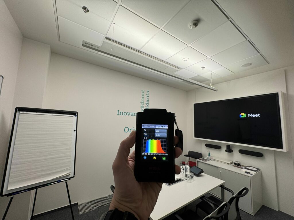 procognitive photobiomodulating with balanced spectral composition in the 450-670 nm band; 5000 K; CRI 95; DERmel (D65) = 0.87; (D50) = 1.02