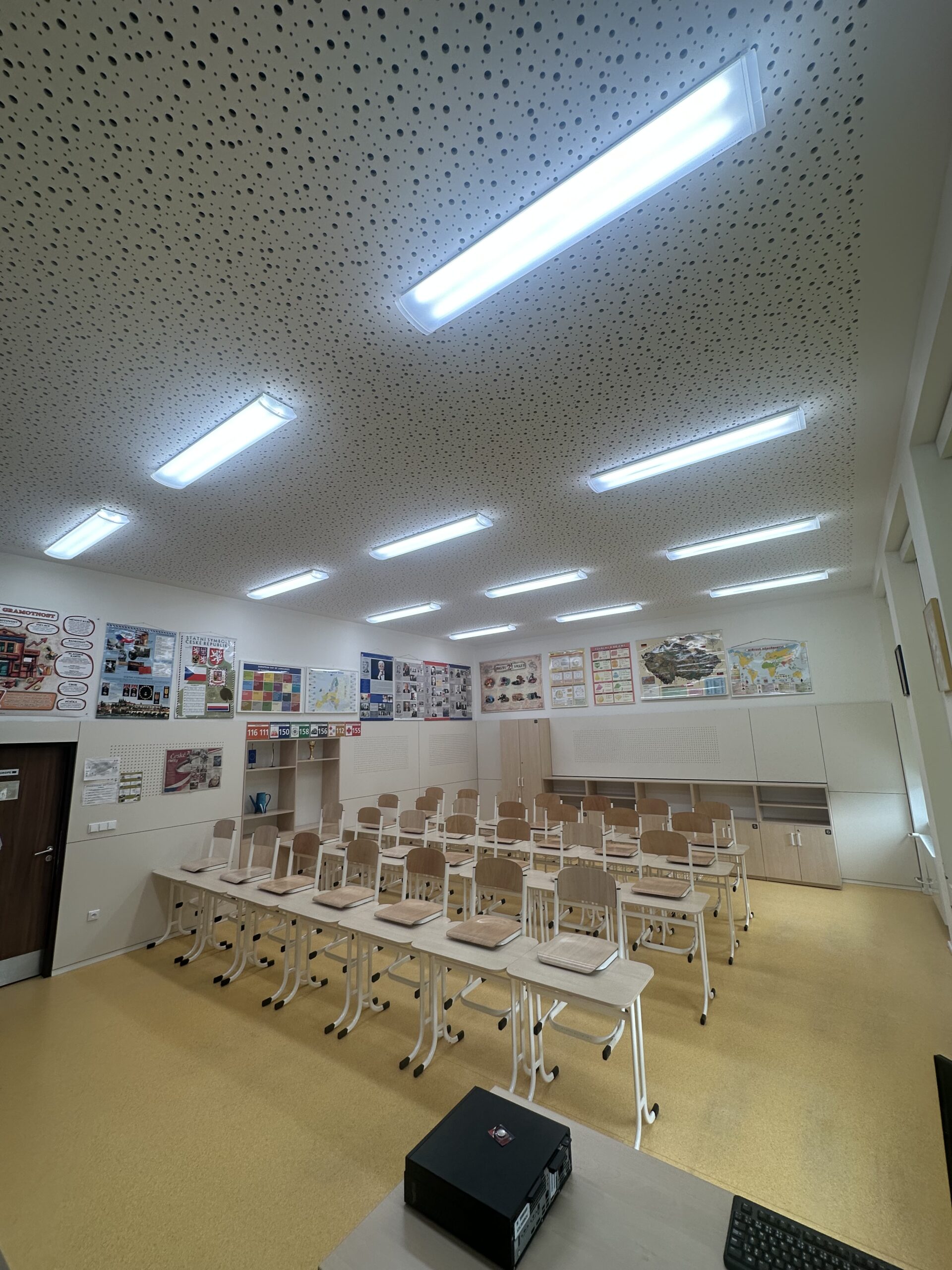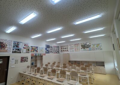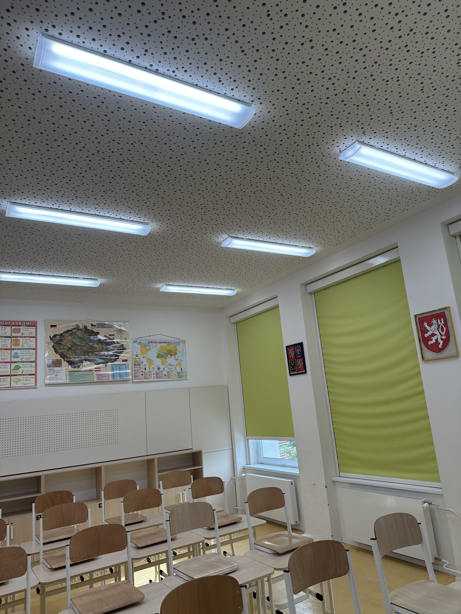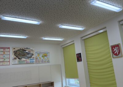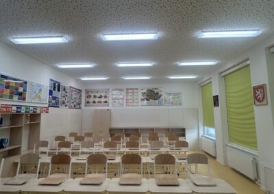 The school participated in a pilot project in cooperation with UCEEB CTU and the city of Černošice. Old fluorescent lamps were replaced with Spectrasol full-spectrum procognitive LED lighting, which closely mimics natural daylight with its spectrum. The installation was quick, without complications, and allowed for an immediate comparison with standard LED lighting.