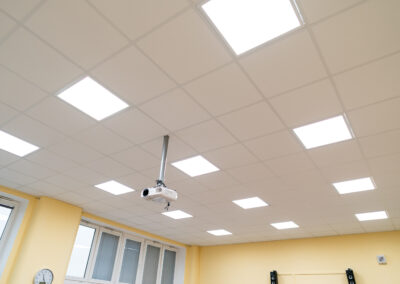 - Spectrasol IBP 600×600 mm procognitive luminaire, embedded in raster soffits, installed throughout the school in 2 phases in classrooms, workshops, teachers’ offices and the teachers’ lounge.