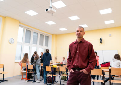 “The initial subjective feedback from students and teachers is very positive. The new light has not only increased the visual comfort but also the overall vitality of the environment in the classrooms and cabinets. Students find it much easier to work in the classrooms. And not only the students. In the first phase, when the lighting was not yet installed everywhere, colleagues from the teaching staff also went into the classrooms with this lighting. For example, they would grade tests there”, says the principal of the Na Pražačce Grammar School, Mgr. Martin Kašpar, sharing his initial impressions after the installation of the upgraded lighting. He went on to say regarding the installation: “The lighting was installed throughout our school in 2 phases in 2018 and 2019. All works were completed exactly to the schedule and the client’s requirements, including the adjustment of the lighting in certain rooms. Immediately after installation, we noticed a subjective improvement in lighting comfort in the school. We have not had any breakdowns during the entire time the luminaires have been operated. At the same time, we have seen energy savings from the very first moment“.