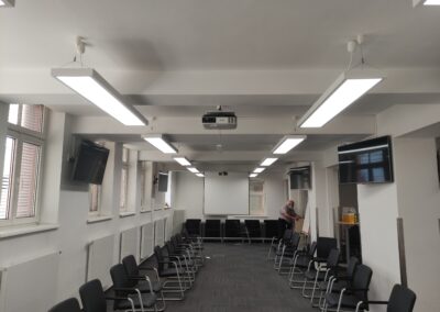 - In the companyâs open space areas, the existing raster soffit was used, into which square-shaped luminaires were installed. In the meeting rooms we installed rectangular procognitive luminaires by hanging them on a suspension cable system.