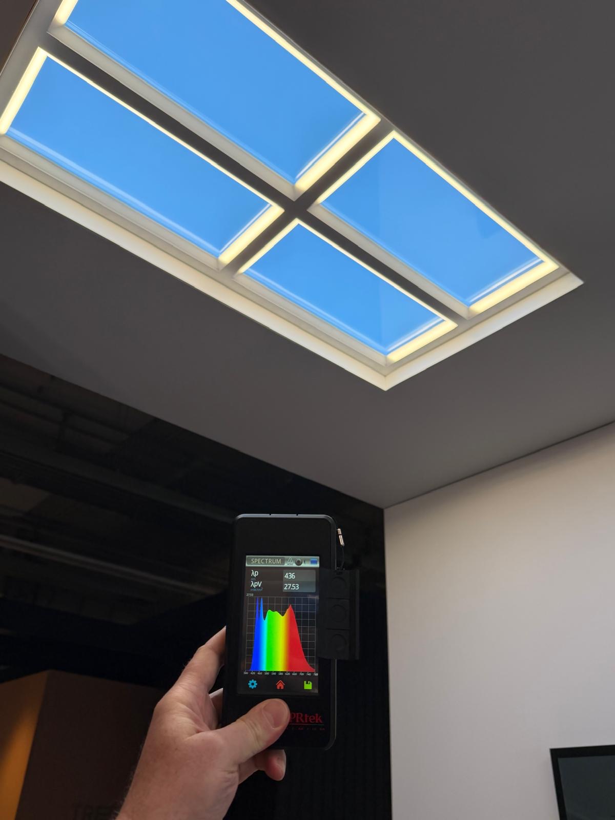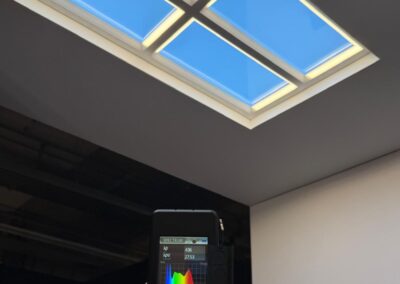 One of the most interesting solutions we saw at the fair was a realistic window simulation using LED technology. This system creates the illusion of real daylight and a view of the sky, giving interiors without windows the feeling of a natural outdoor environment. When observing these installations, it truly felt as if there were a window to nature above you—equipped, of course, with full-spectrum LED sources.