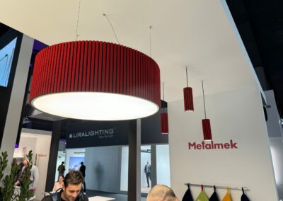 Another observed trend is the integration of acoustic elements combined with lighting fixtures. At the same time, two strong trends in light distribution are visible — the first and correct one is the use of large emitting surfaces of lights to imitate the natural sky indoors and improve visual comfort by reducing glare.